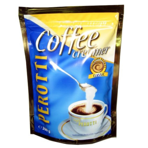 Rendkívül gyorsan oldódó kávéfehérítő por a Perottitól. 20 db/karton Összetevők : Glükózszörp, Hidrogénezett növényi ételzsír (24%), Keményítő, Tejfehérje, Stabilizátorok (dikálium-hidrogén-foszfát és nátrium-polifoszfát), Emulgeálószerek (zsírsavak m