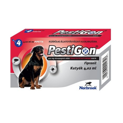 Pestigon spot on XL 40-60 kg 4x Hatóanyag: Fipronil 50 mg/egy 0,5 ml-es pipetta tartalma Fipronil 67 mg/egy 0,67 ml-es pipetta tartalma Fipronil 134 mg/egy 1,34 ml-es pipetta tartalma Fipronil 268 mg/egy 2,68 ml-es pipetta tartalma Fipronil 402 mg/egy