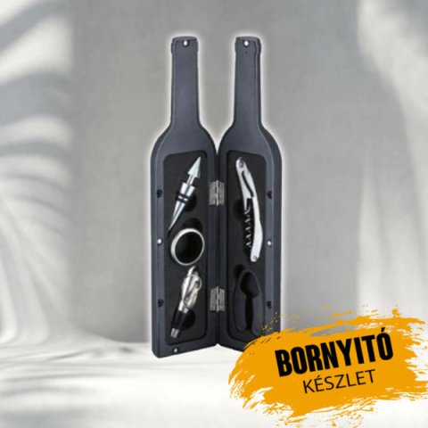 Ez egy nagyszerű ajándék a bort fogyasztó ismerősödnek, barátodnak. A készlet tartalmazza a borfogyasztáshoz legszükségesebb eszközöket.