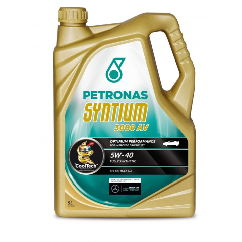 API SN ACEA C3 VW 502.00-505.01 gépgyártói jóváhagyás MB-APPROVAL MB 229.51 gépgyártói jóváhagyás PORSCHE A40 RENAULT RN0700/RN0710 FCA 955535-S2 FORD WSS-M2C917-A Performance A PETRONAS Syntium 3000 AV 5W-40 egy teljesen szintetikus, °CoolTech™ technoló