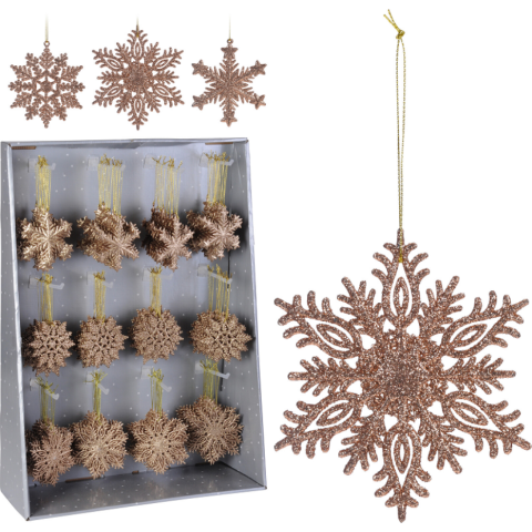 1 kép Pezsgő színű hópehely karácsonyfadísz többféle változatban 10cm CAA650130