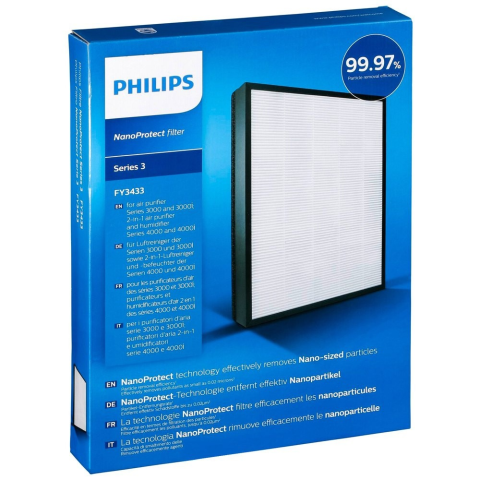 Philips FY3433/30 NanoProtect szűrő NanoProtect HEPAszűrő Márka: Philips FY3433/10 EAN kód: 8710103771364 Egészségesebb levegő, folyamatosan 99,97%-os tisztítást biztosít A NanoProtect HEPA-szűrő a 0,3 μm méretű részecskék – köztük a gyakori allergének, p