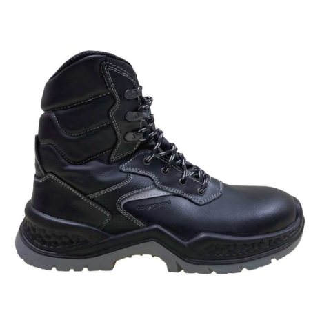 Véd a 1000 V-os, 50 Hz-es váltakozó áramú feszültségtől, száraz körülmények között Vízálló (WR) és kiváló vízgőzáteresztő tulajdonságú, fekete, marha színbőr felsőrész Rugalmas, energiaelnyelő (E), olajálló (FO), kétrétegű PU talp Kompozit orrmer