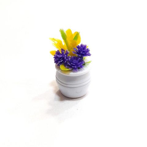 1 kép Pici sárga-kék műanyag virág kaspóban. Kaspó mérete: 2x1,6 cm