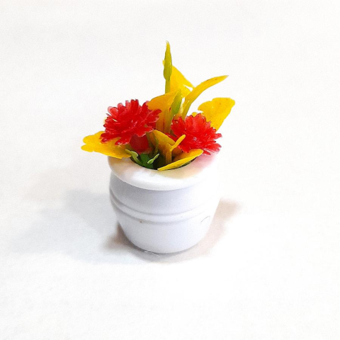 1 kép Pici sárga-piros műanyag virág kaspóban. Kaspó mérete: 2x1,6 cm