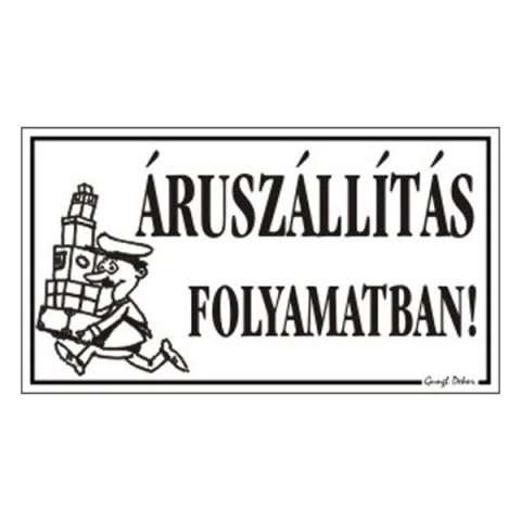 Piktogram Áruszállítás folyamatban fehér Áruszállítás folyamatban. Mérete? 12,5x22,5 cm. Fehér alapon fekete szöveg.