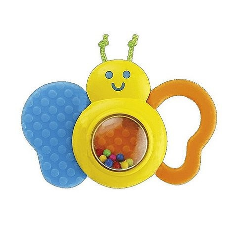 Pillangó csörgő bébijáték Rázd a lepkét, ami csörögni fog! A Pillangó csörgő bébijáték egy műanyagból készült színes lepke, ami rázás hatására zörgő hangokat ad ki magából. A pillangó rágókaként is használható, a játék fejleszti a baba kézügyességét, hallását és érzékelését is. A Pillangó csörgő bébijáték méretei: 13 x 9 x 3 cm.
