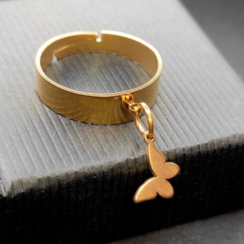 1 kép Pillangós charmos állítható méretű gyűrű, arany színű, választható szélességben