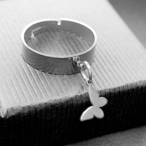 1 kép Pillangós charmos állítható méretű gyűrű, ezüst színű, választható szélességben