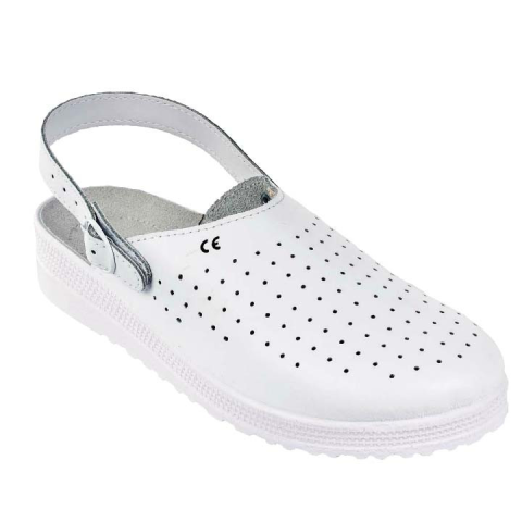 Munkavédelmi pántos klumpa, pille könnyű Könnyű súlyú, orrmerevítő nélküli munkavédelmi klumpa , egészségügyi, élelmiszeripari munkákhoz, egész napos viseletre. MSZ EN ISO 20344 Antisztatikus Olajálló, csúszásmentes fehér PU talp Energiaelnyelő sarok F