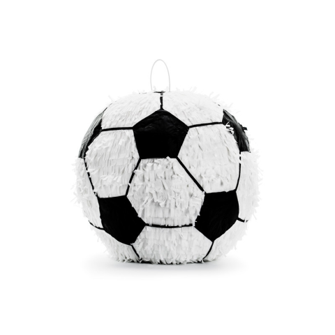 Pinata foci formájú fehér színben, fekete elemekkel, finomságokkal töltve, mérete kb. 35 x 35 x 35 cm.