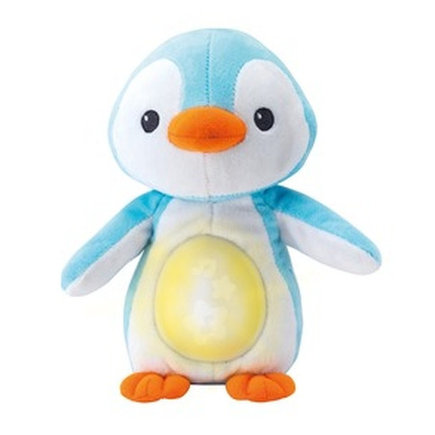 Pingvin zenélő - altató plüss bébijáték Puha pingvin plüssfigura, halvány fénnyel és dallamokkal! A Pingvin zenélő - altató plüss bébijáték egy vidám figura, aki segít a picinek álomra hajtani a fejét Az altató pingvin halk zenét játszik, miközben hal