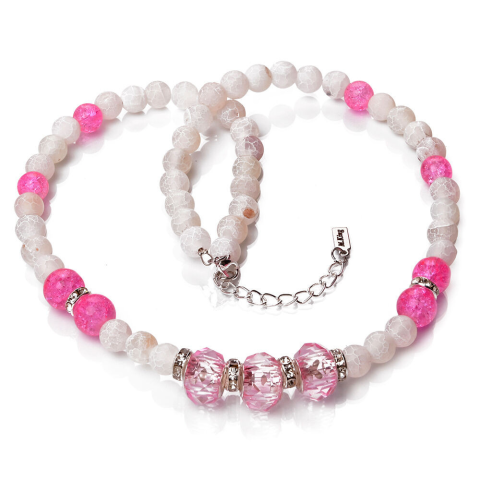 1 kép Pink Delight – Hegyikristály és achát exkluzív ásvány nyaklánc dobozban