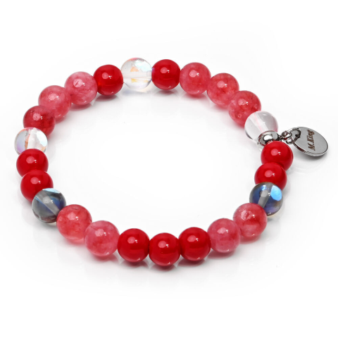 1 kép Pink Honeymoon – Kalcedon, eperkvarc és osztrák kristály ásvány karkötő dobozban