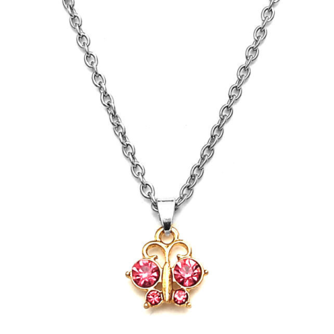 1 kép Pink kristály pillangós medál ezüst színű lánccal
