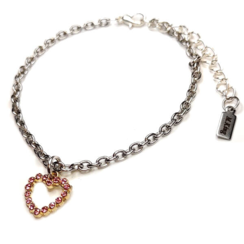 1 kép Pink kristály szív charmos ezüst színű karkötő