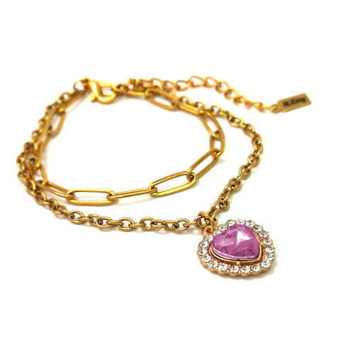1 kép Pink kristály szív charmos rozsdamentes acél dupla karkötő, arany színű