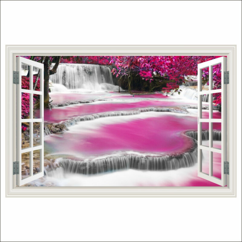 1 kép Pink Waterfall Window öntapadós tapéta, 300 x 200 cm