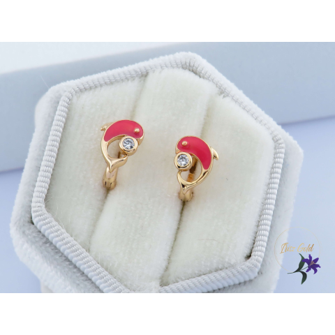 Goldfilled delfines gyermek fülbevaló Szin: 18K pink tűzzománc kisdelfin cirkóna kövekkel díszítve Méret: 10mm Zár: karika belső méret 7 mm