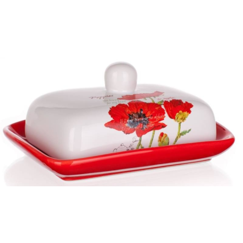 POPPY Red vajtartó, pipacs motívummal díszített piros-fehér máz, anyaga - kerámia, méretek: hosszúság 17,5 cm, szélesség 13 cm, magasság 8 cm.