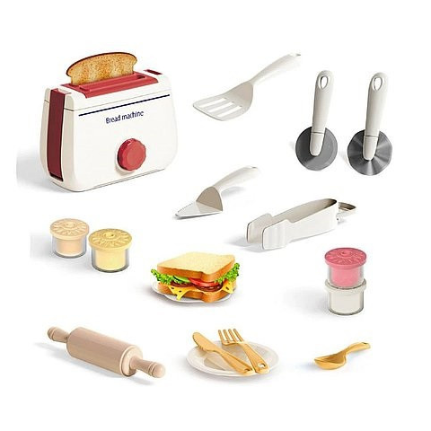 Pirítóskészítő szett gyurmával Készíts finom pirítóst gyurmával! A Pirítóskészítő szett gyurmával egy fehér kenyérpirítót tartalmaz kenyérrel, gyurmákkal, eszközökkel, nyújtófával, tányérral és evőeszközökkel A Pirítóskészítő szett gyurmáiból készítsd