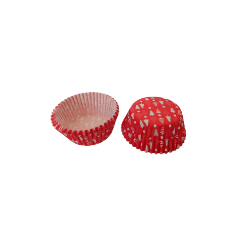 1 kép Piros alapon fehér fenyőfa mintás karácsonyi muffin papír 100 db