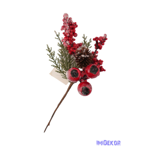Piros bogyós pick 23cm dekorációs kellék 1 kép