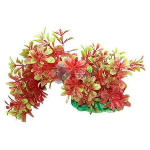 Piros és zöld akváriumi műnövény hajlítható szárral. Mutatós, természetes hatású dísz. A dekorációs szerepe mellett a díszhalaknak is rejtekhelyet nyújt, ami nagyban növeli a komfortérzetüket. Élő növényekkel együtt is behelyezhető, remekül kiegészíti a látványvilágot. Talpa nehezékként szolgál, stabilan az akvárium alján tartja a műnövényt. Szára hajlítható. Magassága kb. 15cm.