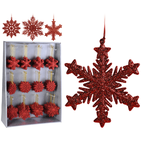 Piros hópehely mintás karácsonyfadísz többféle változatban 10cm CAA650120