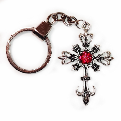 1 kép Piros köves gótikus kereszt kulcstartó