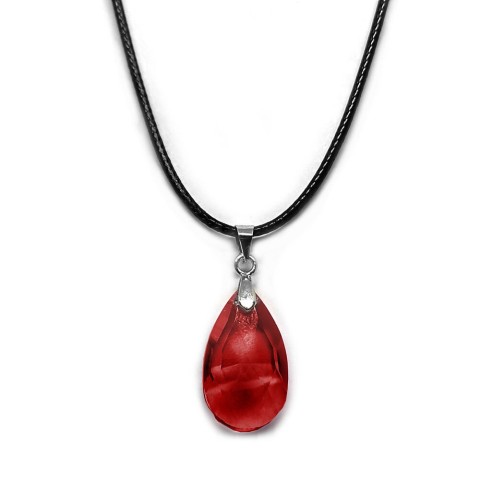 1 kép Piros kristály csepp medál bőr lánccal II.