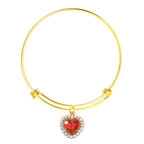 1 kép Piros kristály szív charm arany színű nemesacél karperecen