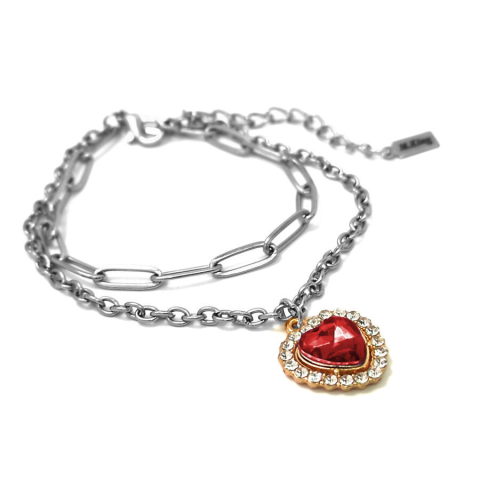 1 kép Piros kristály szív charmos rozsdamentes acél dupla karkötő, ezüst színű