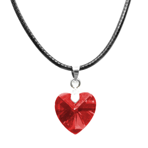 1 kép Piros kristály szív medál fekete bőr lánccal