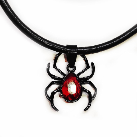 1 kép Piros kristályos fekete pókos medál műbőr lánccal