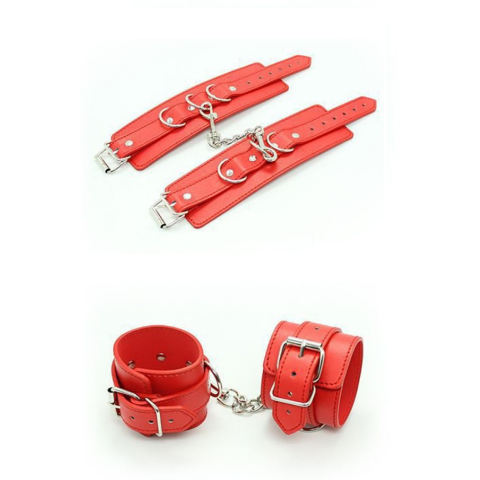 Piros műbőr bilincs.Kézre vagy lábra-ahogy tetszik.Karabinerrel.Állítható méret.Szélessége:5cm.