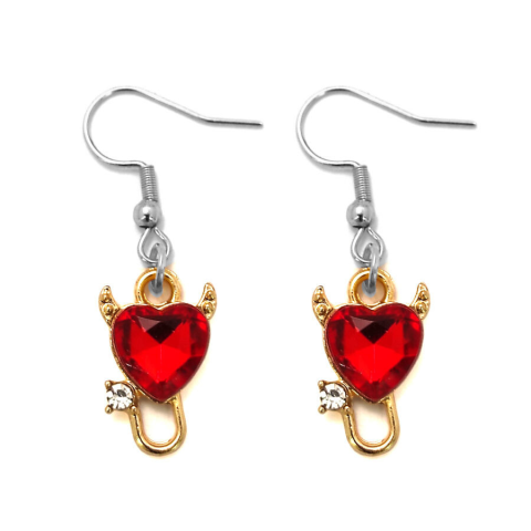 1 kép Piros ördög szív fülbevaló ezüst színű akasztóval