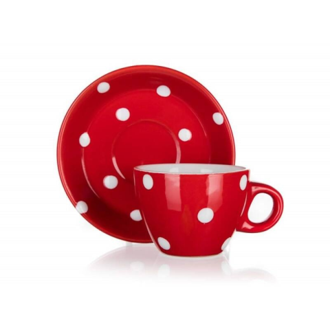 1 kép Piros pöttyös csésze alátéttel 100 ml