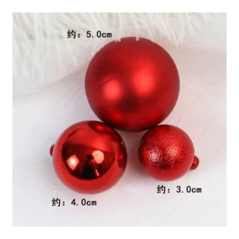 A csomag 3 db gömböt tartalmaz : 1 matt,1 fényes és 1 csillogós felületűt. Anyaga: műanyag Mérete:-átmérője: 4,5 cm, 4 cm, 3 cm. Piros színű gömb – 3 db/csomag tortadísz a különleges alkalmakra Tedd igazán elegánssá és ünnepivé süteményeidet ezzel a