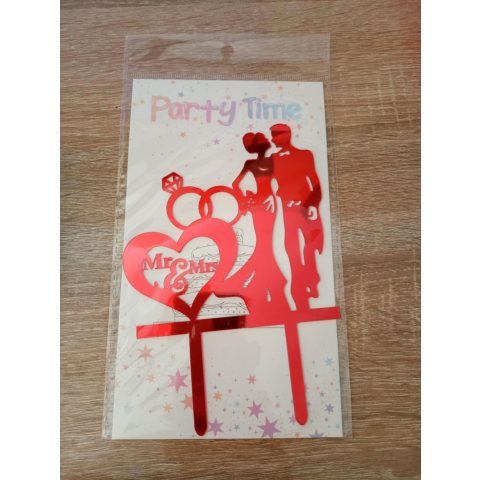 A piros színű ifjú párt ábrázoló torta beszúró, igazi dísze lehet minden tortának. A beszúró teljes magassága: 16 cm A formák magassága: 10,5 cm Színe: piros