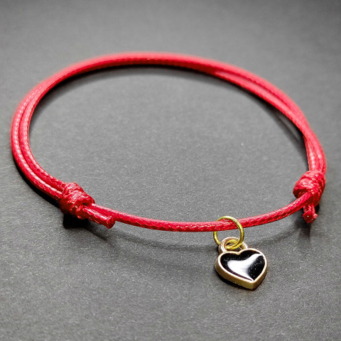 1 kép Piros zsinórszövet karkötő fekete tűzzománc szív charmmal