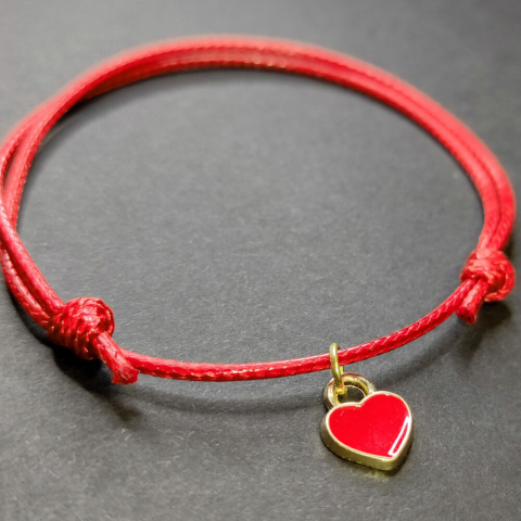 1 kép Piros zsinórszövet karkötő piros tűzzománc szív charmmal