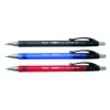 Nyomógombos mechanikával működő grafitirón, 0,5 mm-es grafitbéllel, beépített radírral. Gumírozott ceruzateste kényelmes fogást és használhatóságot biztosít. Automatikus hegyadagolás, visszasüllyeszthető irónbélkivezető.