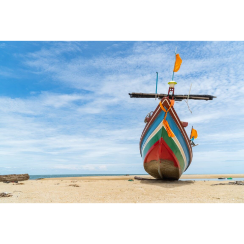 1 kép Plaja81 öntapadó és mosható falfestmény hagyományos csónakkal, 200 x 150 cm