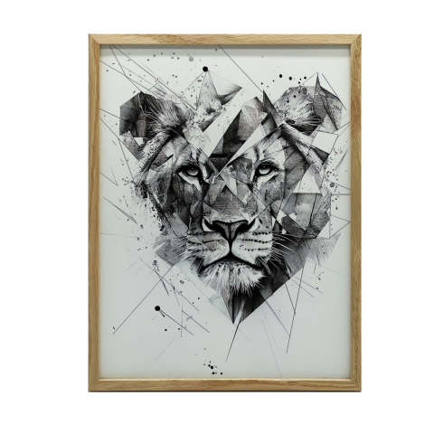Geometriai Oroszlán Poszter - Fekete Alumínium Kerettel, 70x100 cm Díszítse otthonát ezzel a lenyűgöző, limitált kiadású geometriai oroszlán poszterrel! A neves lengyel művész, Marcin Zbijowski alkotása modern és elegáns megjelenést kölcsönöz minden...