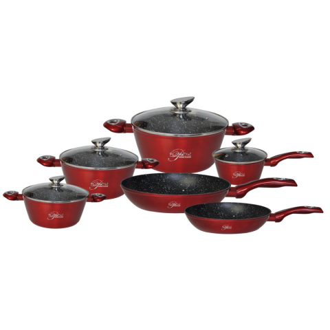 Platinum Collection 10 részes márvány bevonatú alumínium edénykészlet, fényes piros edény termékleírás
