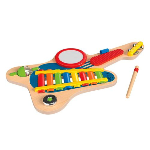 A hallás, ritmusérzék és motorikus készség játékos fejlesztésére 6 részes gitár-hangszerkészlet: 6 db különböző hangszer egyben: csengettyű, kereplő, csengő, xilofon, dob és csörgő Xilofon-pianó hangszerkészlet Xiliofon 1 db faü