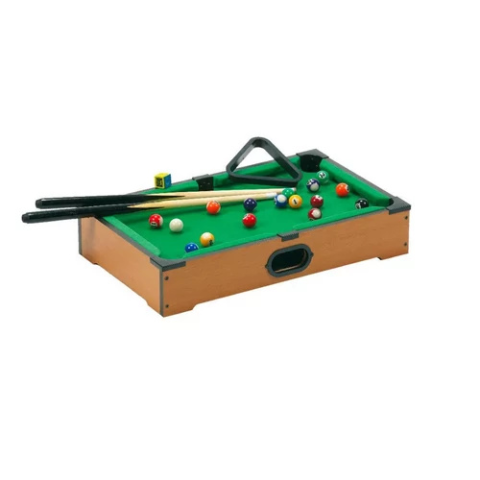 A játékasztal mérete: 51 x 31 x 10 cm. - Tartalma: 2 dákó, 1 kréta, 1 golyókészlet, 1 háromszög - Szerelést nem igényel - Fa asztalkeret fóliával - Az apró alkatrészek miatt 3 év alatti gyermeknek nem ajánlott