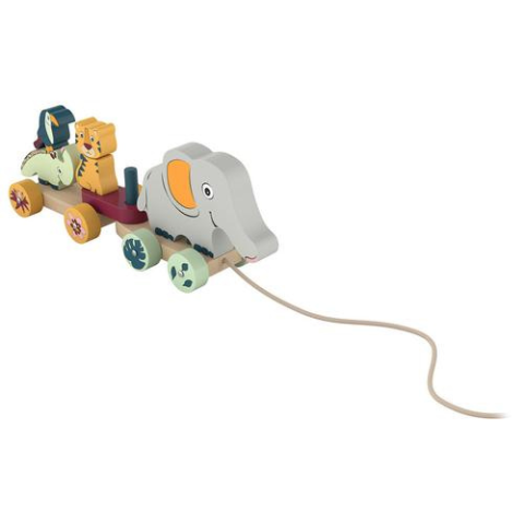 Játékos formában támogatja a finommotorikát 2 kocsi és 4 bedugható állatfigura 6 darabos készlet valódi fából