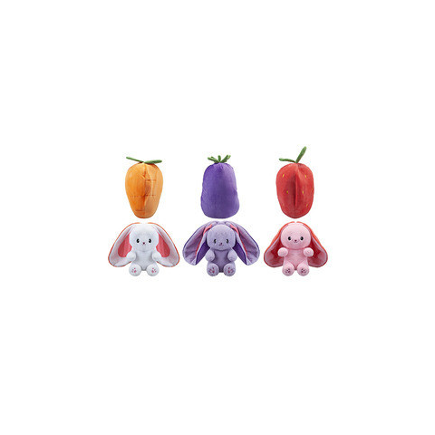 Plüss gyömölcsből kifordítható nyuszi, 20 cm, 3 féle